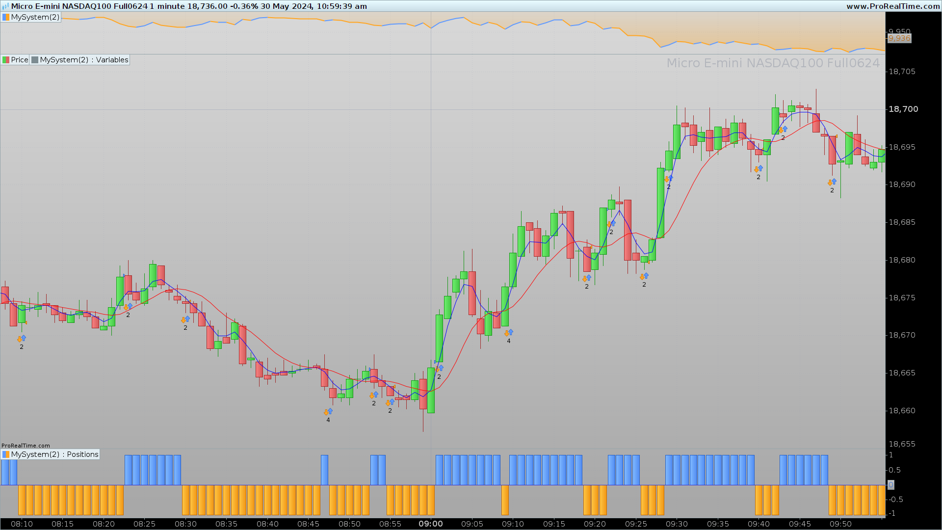 Bonsoir, merci pour votre réponse mais ca ne correspond pas a ce que je demande. Mettre une condition sur le croisement de deux indics je sais faire…. Ma demande consiste a avoir de ligne de signal gaussien dans un même code qui se croise et qui donne la possibilité de colorier les candles comme dans celui d’origine et sans avoir a me référer a un indicateur en dessous.