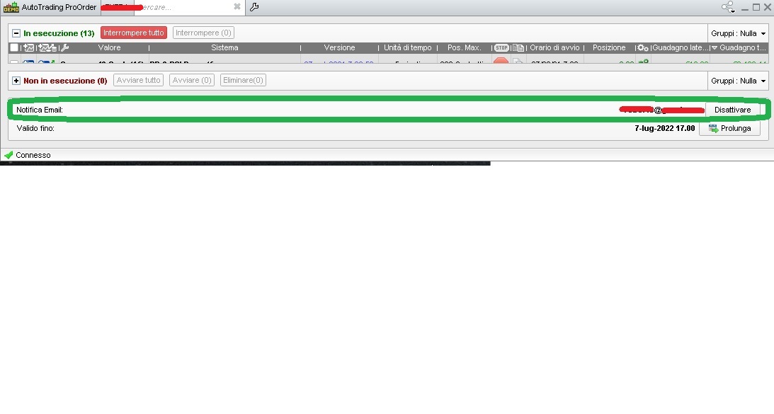 Come puoi vedere dalla foto, metti la tua email nell’apposita casella del pannello di AUTOTRADING (sopra alla scadenza).