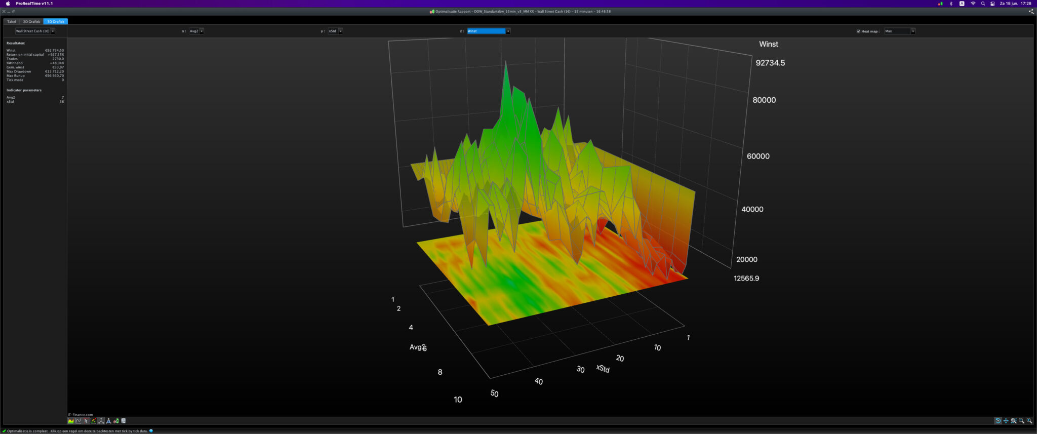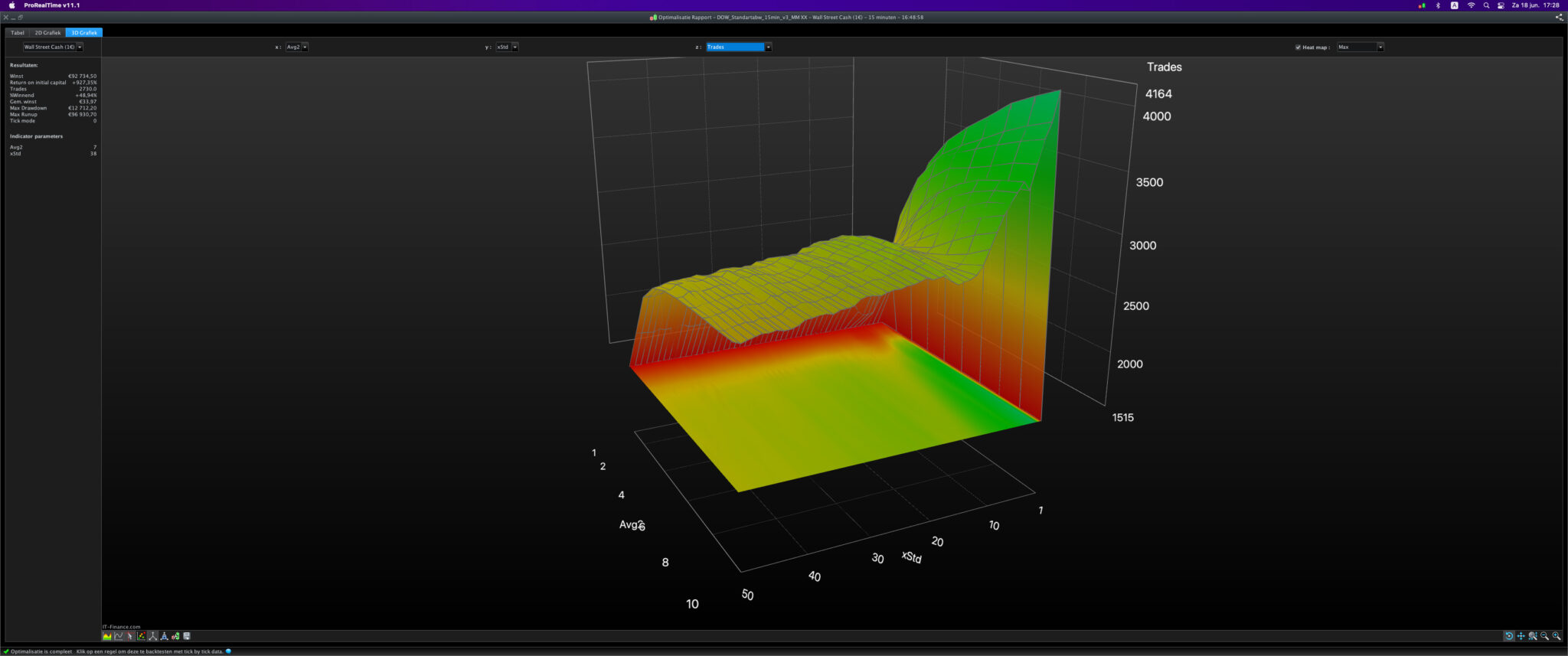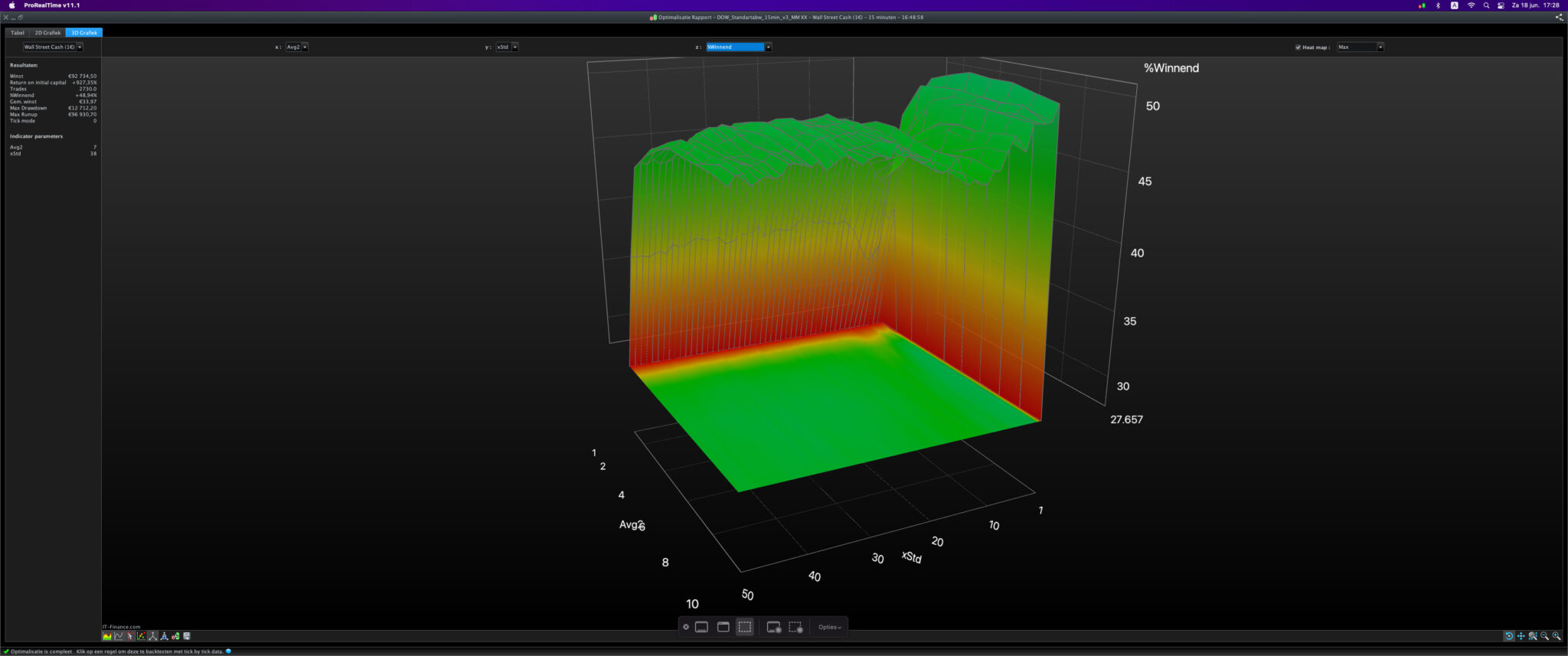 One of the big pitfalls with any system is of course the over-optimization of the parameters used. I did a small test and had two of your parameters (Std and Average) optimized.