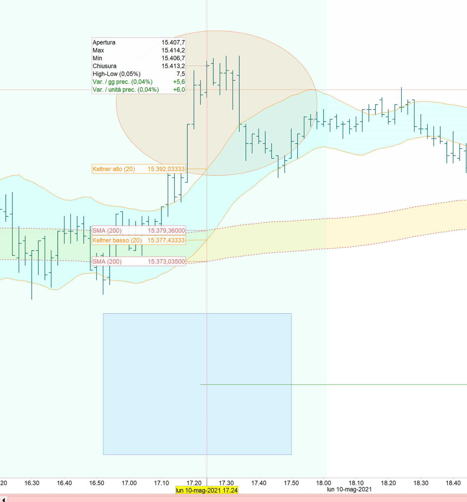 Anche da me la linea che plotta drawtext è a 15347.7, ma non corrisponde, come si vede dall’immagine, al valore di chiusura della candela delle 17:24 e neanche a quelle vicine (dalle 17:20 a 17:30 il prezzo è sempre sopra 15400).