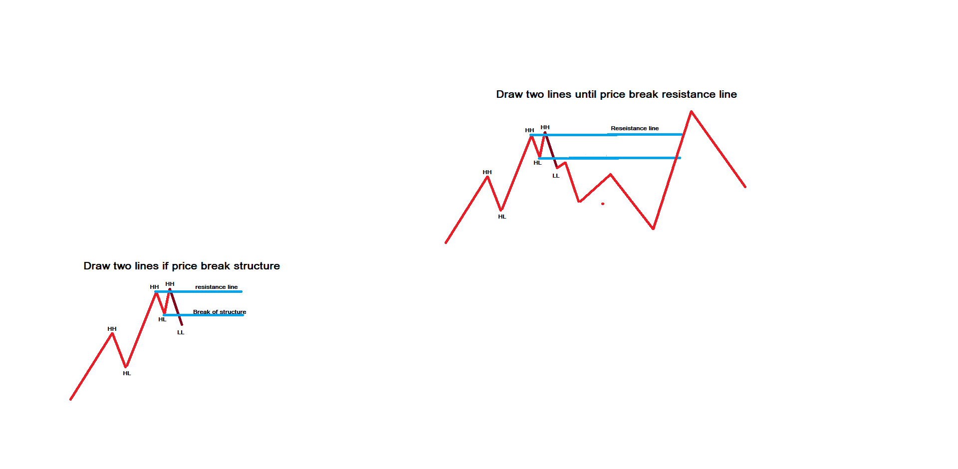 Want it to draw two lines until the price breaks the upper line (resistance line).
