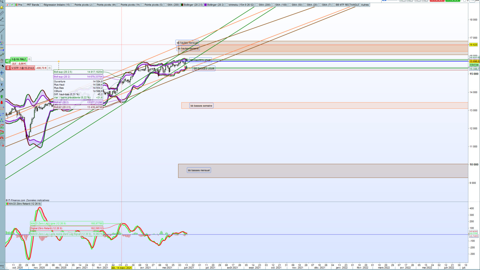 Chaque indicateur doit être déclaré dans le timeframe dont tu souhaites récupérer les infos, ça n’est pas le cas ici, tes variables BolUp2, etc. sont à insérer sous l’instruction de chaque timeframe (et en modifiant leurs noms pour chaque, c’est mieux).