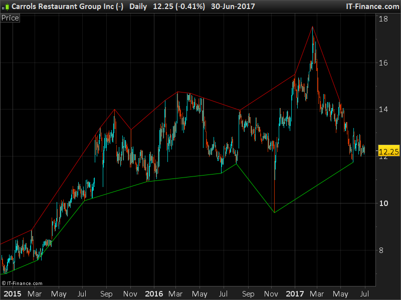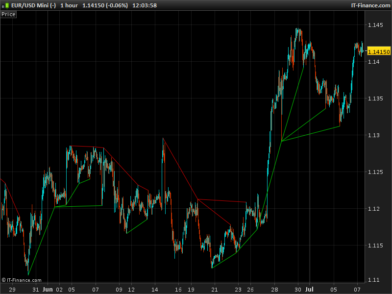 - every time a new 2 high and low points are formed, these new points are connected and the 2 old segment lines are automatically removed (i.e. code basically draws the latest 2 high and 2 low points continually)