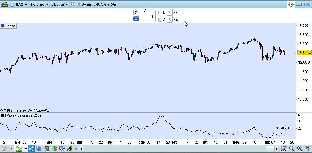 Gentile Roberto avrei bisogno di un aiuto riguardo a un pezzo di codice da inserire in questo mio indicatore di performance. Si tratta di aggiungere nell’indicatore stesso il risultato della formula che solitamente è messo al lato della finestra dell’indicatore stesso. Io vorrei inserirlo dentro la mia codifica. Questo è l’indicatore, molto semplice, che ho scritto. Grazie