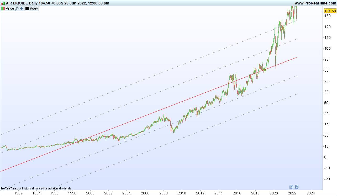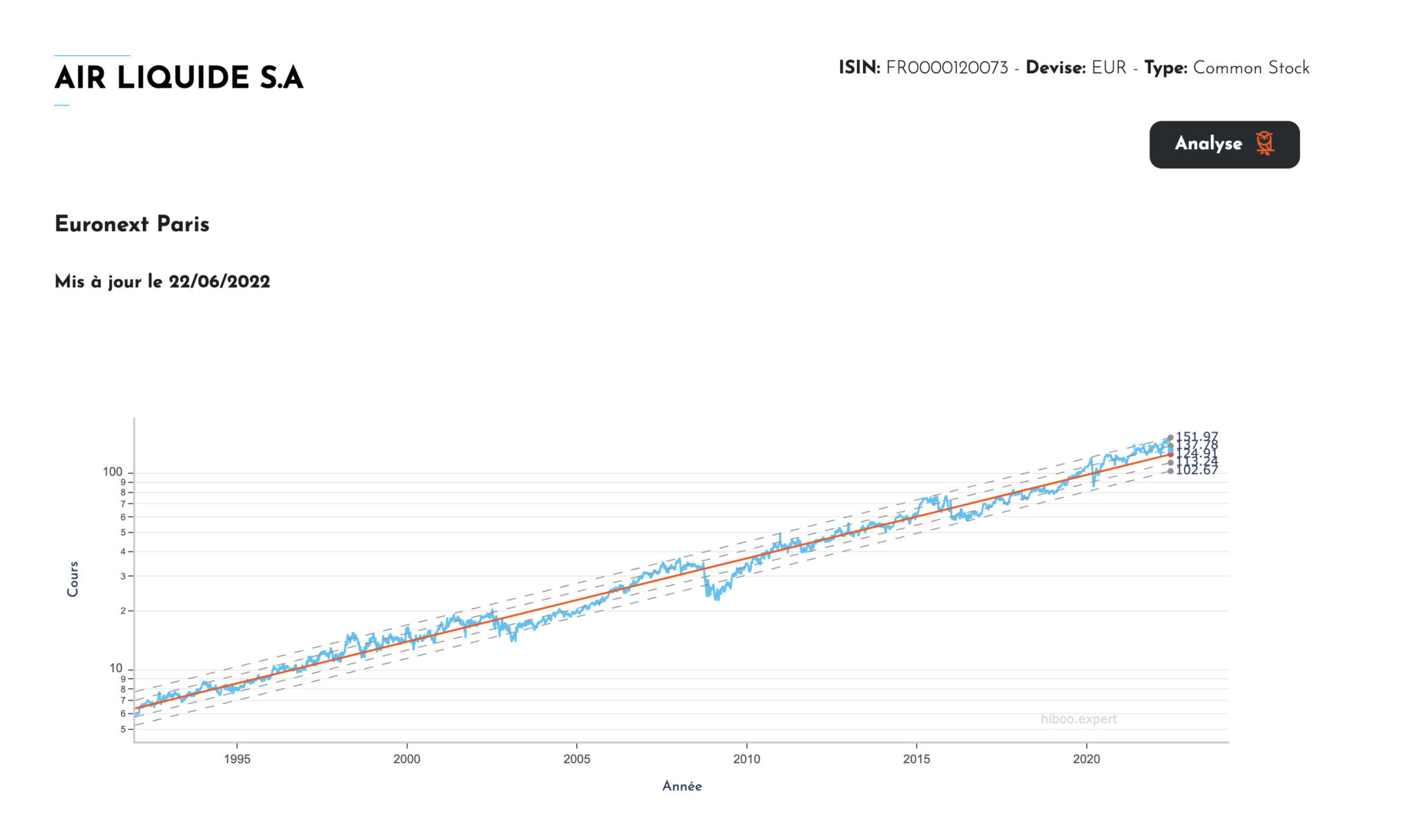 Alors, tu trouveras ci-joint la capture d’écran de la régression linéaire de Air Liquide.
