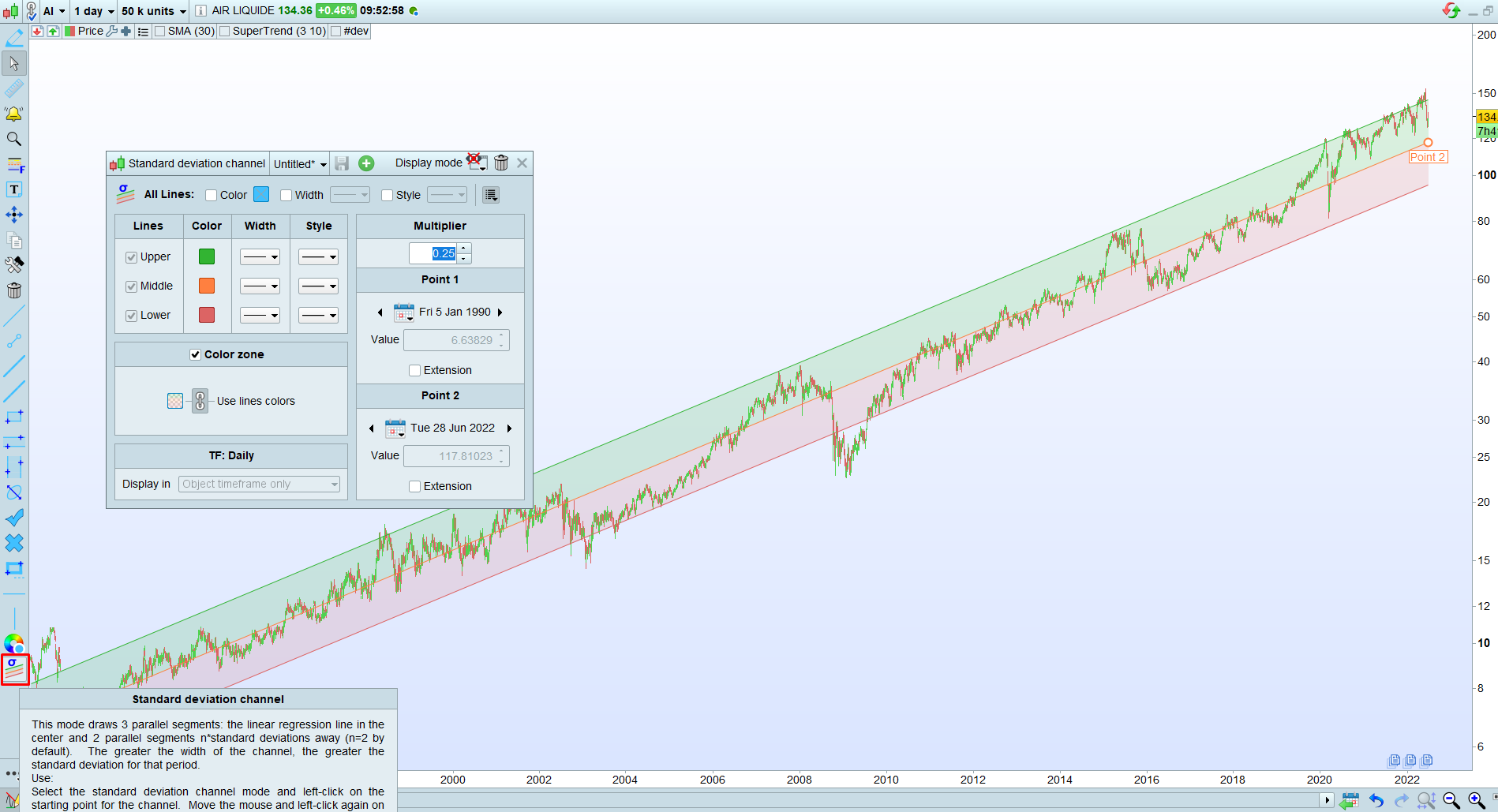 // LINEAR REGRESSION CHANNEL V1 by Nicolas 28 juin 2022