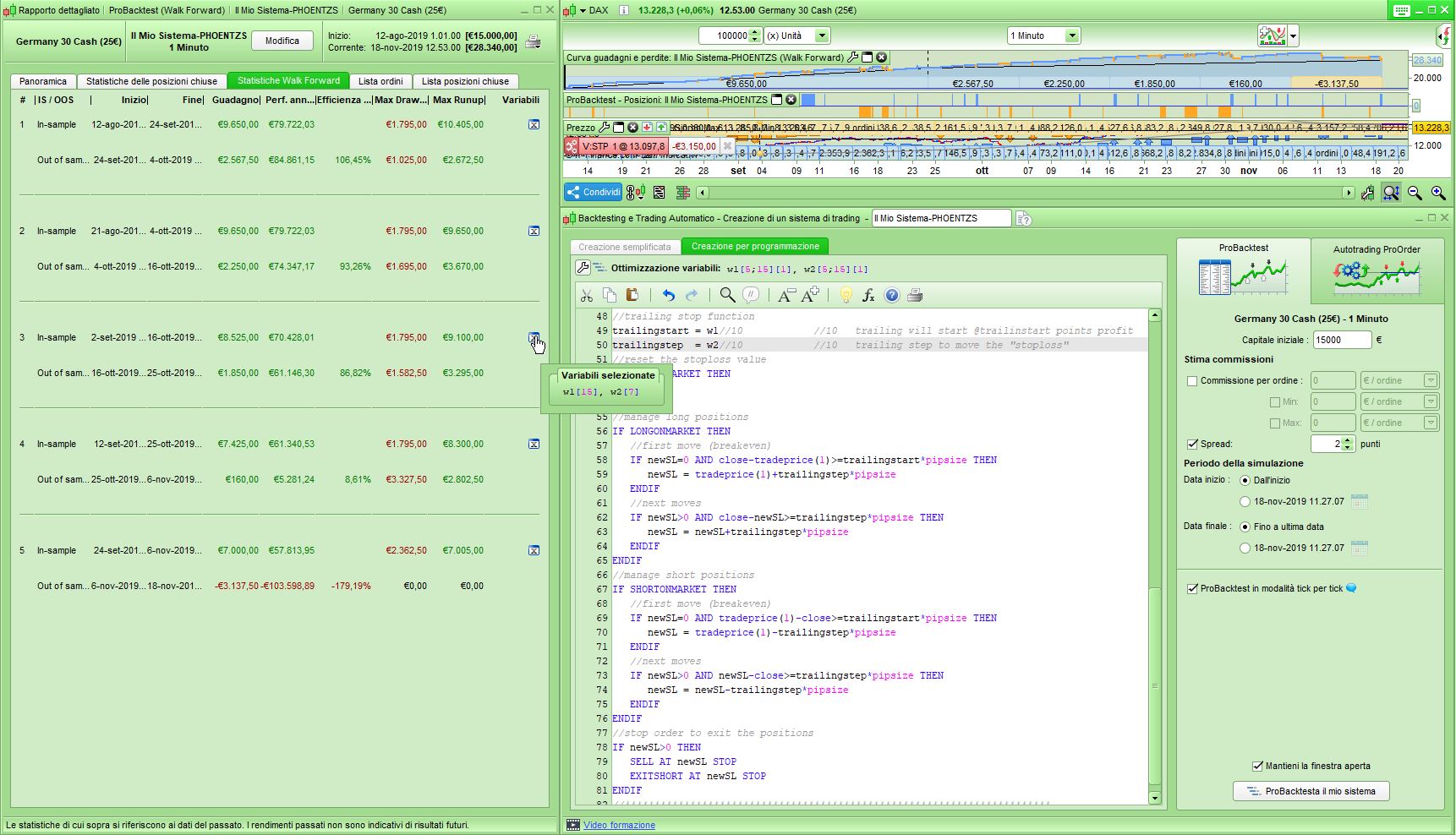 Ich habe TP, SL und Trailing Stop optimiert. Sie können Ihre eigenen Tests machen und “walk forward”.