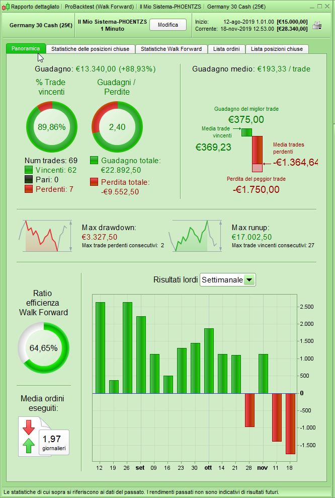 Natürlich sieht man jetzt das der Scalper auf den Uptrend der letzten Wochen zugeschnitten ist. Indem ich die Periodenlänge vom RSI anpasse, würden jetzt in der momentanen Schiebezone vom DAX und des zu erwartenden Downtrends die Ergebnisse weiter verbessert werden können.