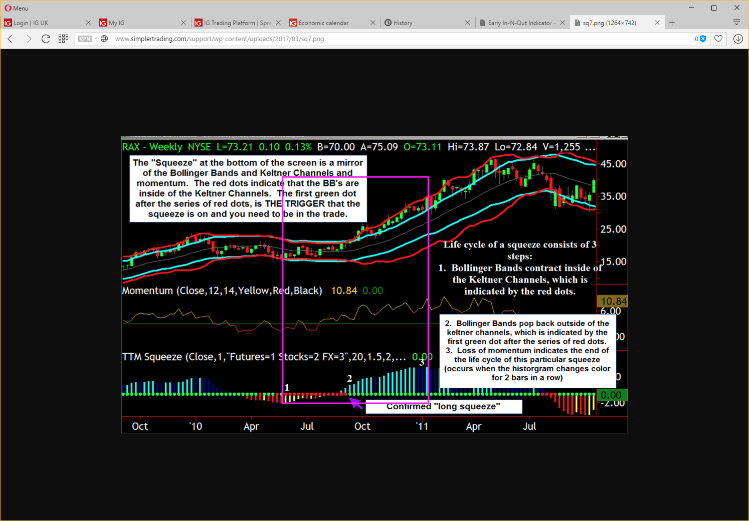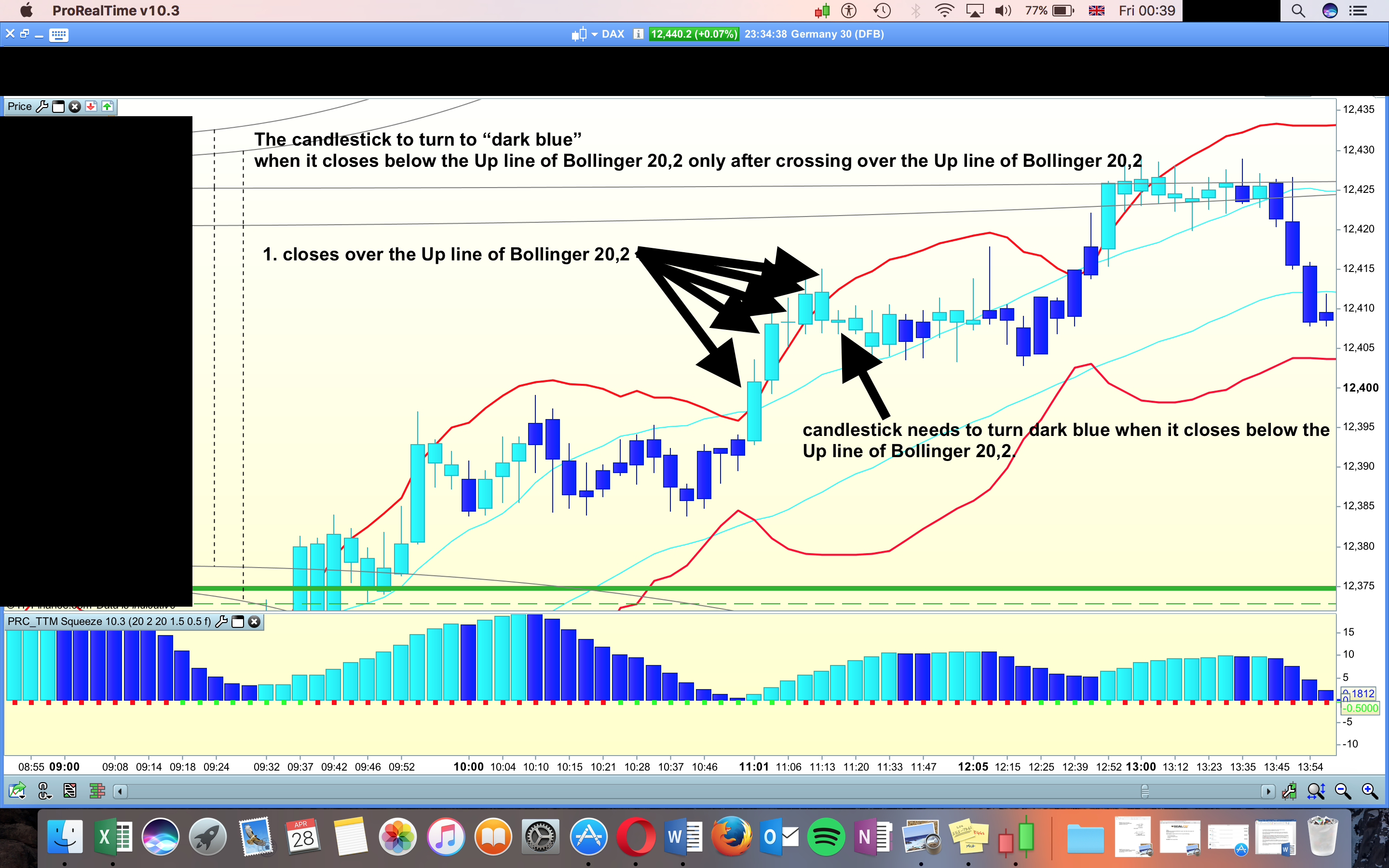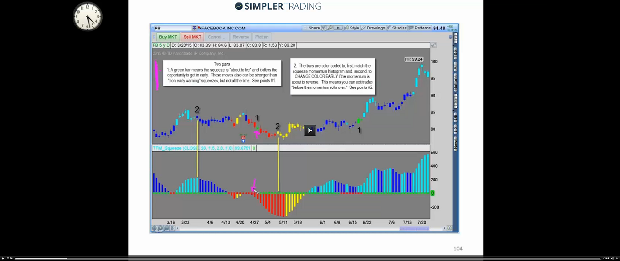 Indicator 5 – TTM Squeeze oscillator (the red/green dots specifically).