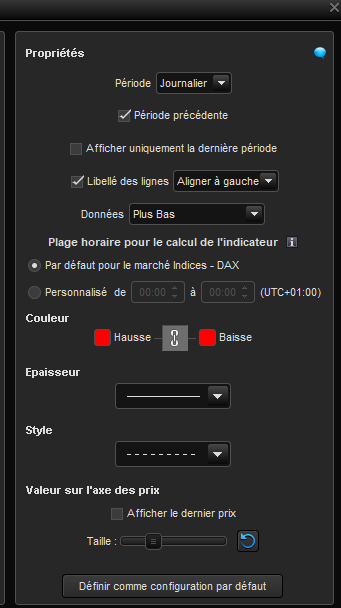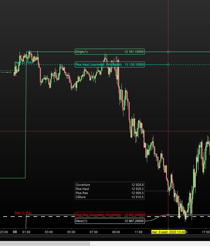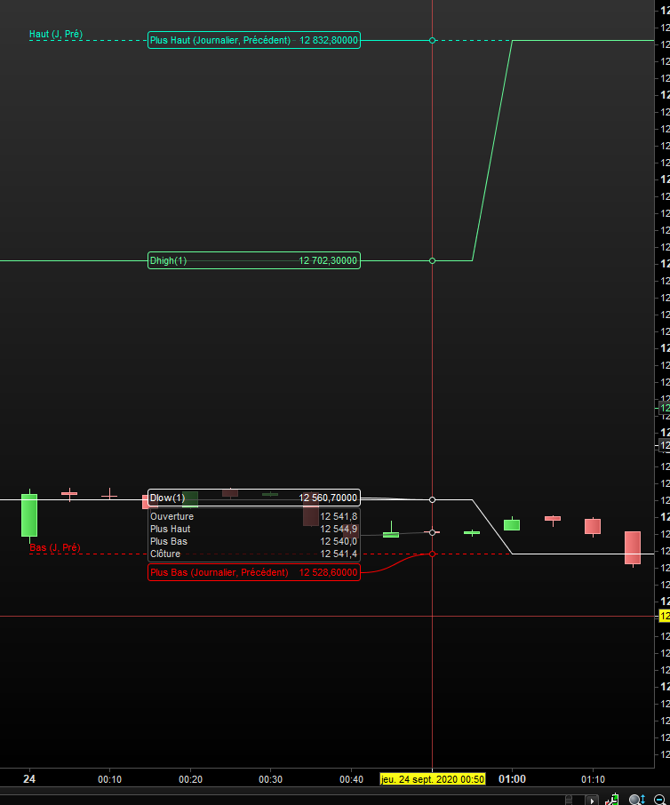 Je constate une différence de valeur renvoyée entre l’indicateur Ligne prix (plus bas journalier, période précédente) et son pendant en code Dlow(1).
