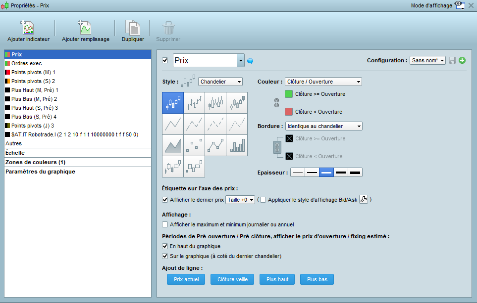 Sur la première capture sur la gauche de la fenêtre on peut voir en haut sous ‘Ajouter indicateur’ un ligne appelée “Prix”, puis plusieurs lignes pour les points pivots, puis “Autres” et ensuite “Échelle”, est-ce que tu as pu vérifié ici ?