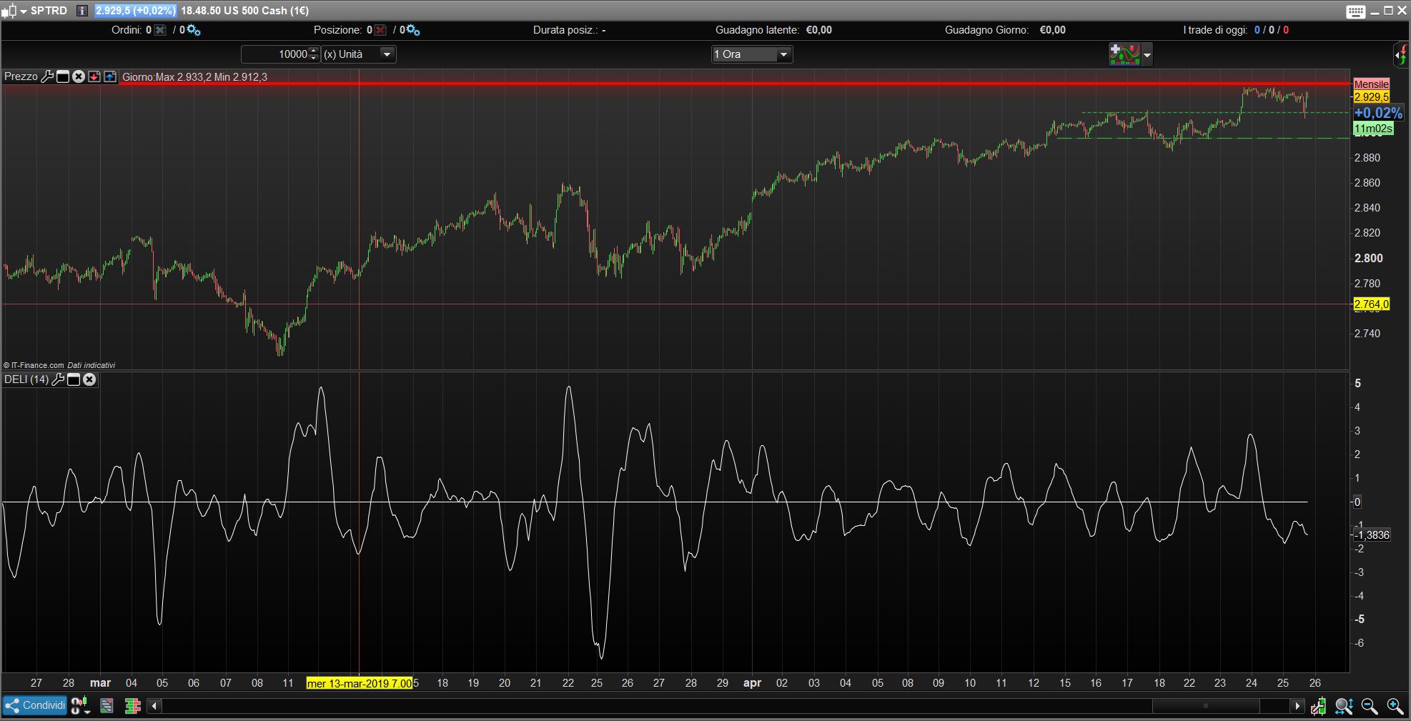The Detrended Ehlers Leading Indicator(DELI) was authored by Jon Ehlers (See “MESA and Trading Market Cycles” by John Ehlers).