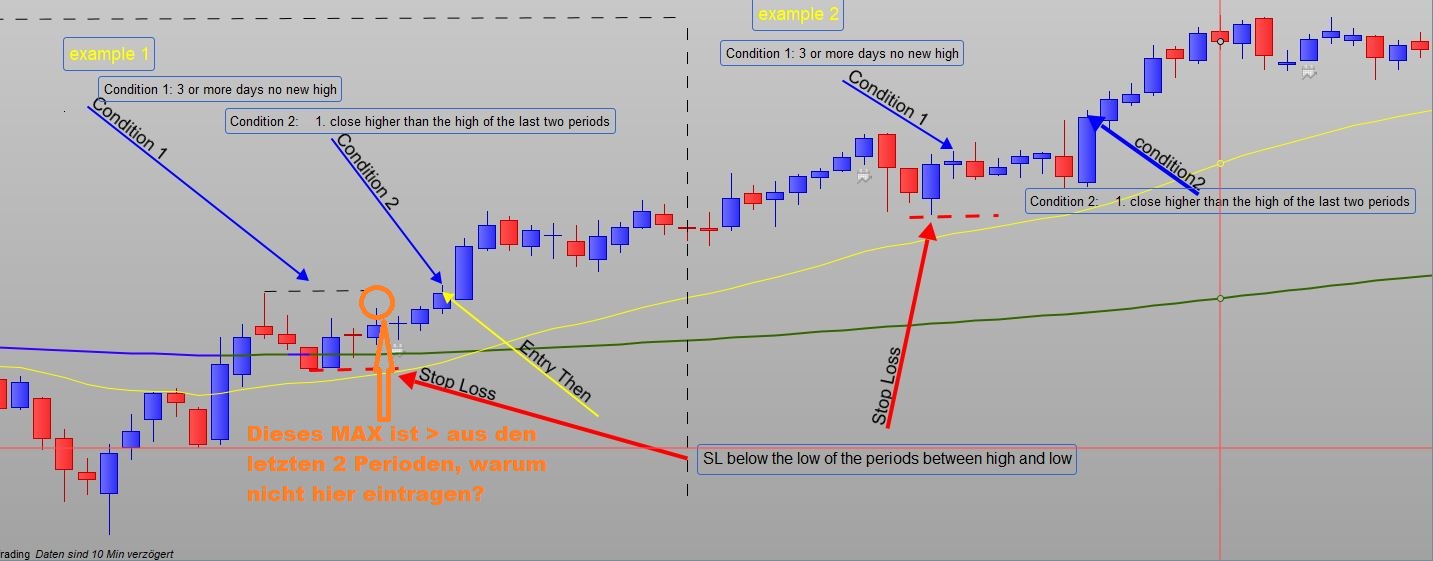 Auf dem angehängten Foto habe ich einen Balken hervorgehoben, dessen Maximum > der letzten 2 Perioden ist, aber hier schreibst du den Eintrag nicht, warum?