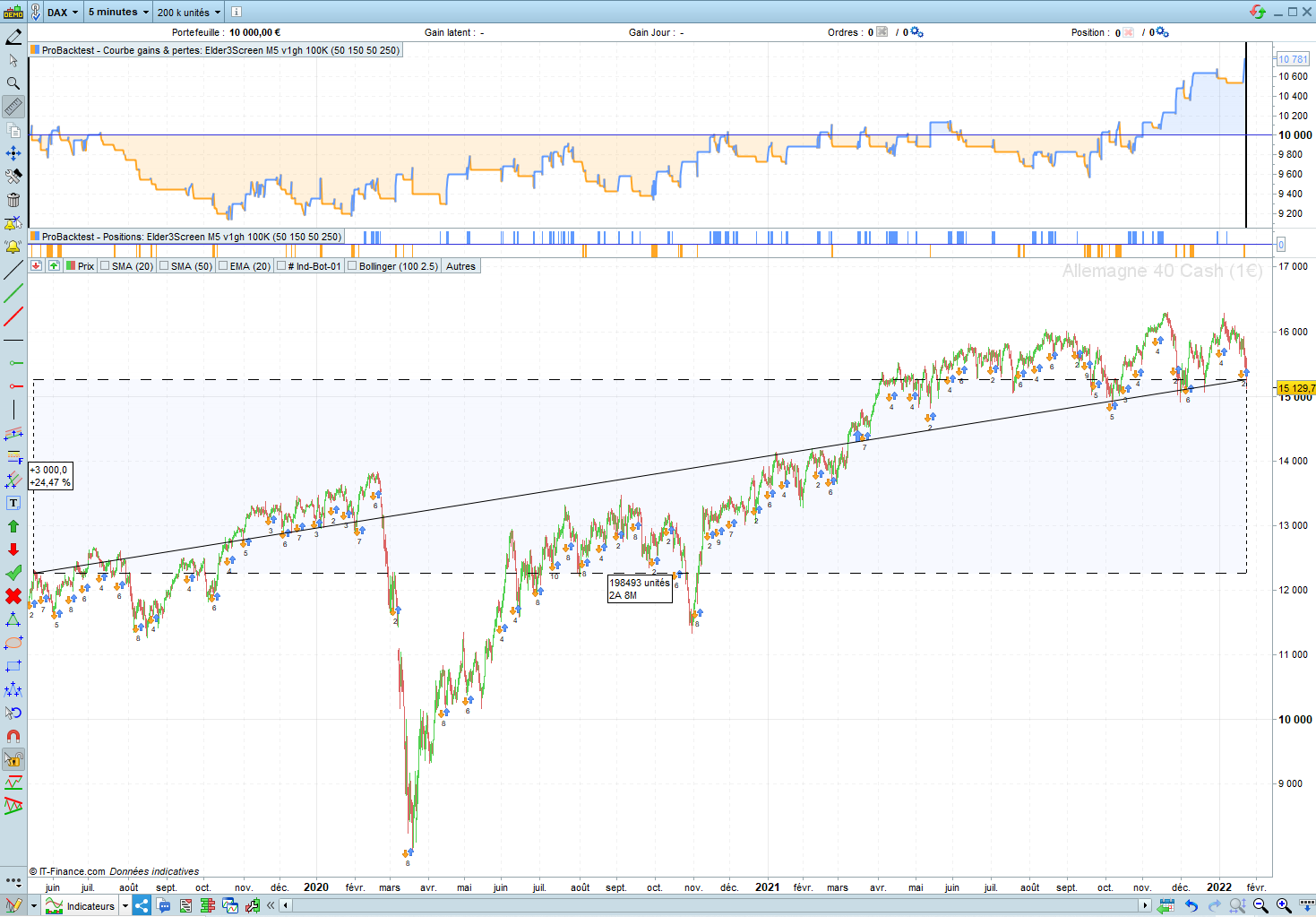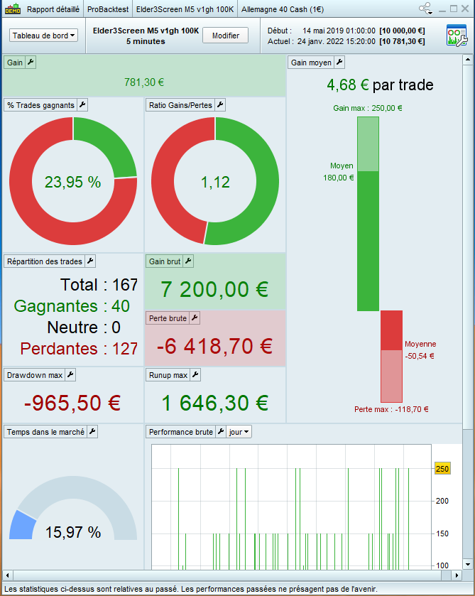 So i’m trying your strategy and doing backtest on M5 on Allemagne 40 Cash (1€) – 5 Minutes, with a spread of 2, I add the photo 01, 02 and 03