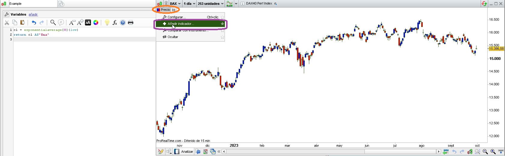 Estoy familiarizado con el procedimiento de añadir el indicador (entre este caso EMA-8 de mínimos) al precio siguiendo el procedimiento indicado por ti, y de hecho ya lo había intentado. Pero no me funcionada y por eso pedí ayuda al foro.