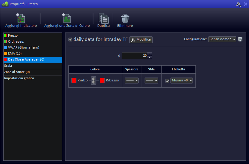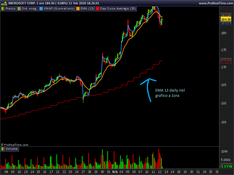 e ho ottenuto la EMA20 daily visibile su grafico a 1 ora.