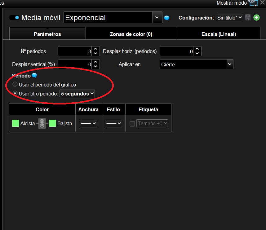 Sólo ProRealTime puede hacerlo, nosotros sólo podemos hacer lo contrario, es decir, mostrar un indicador que funcione durante 5 minutos durante 10 segundos.