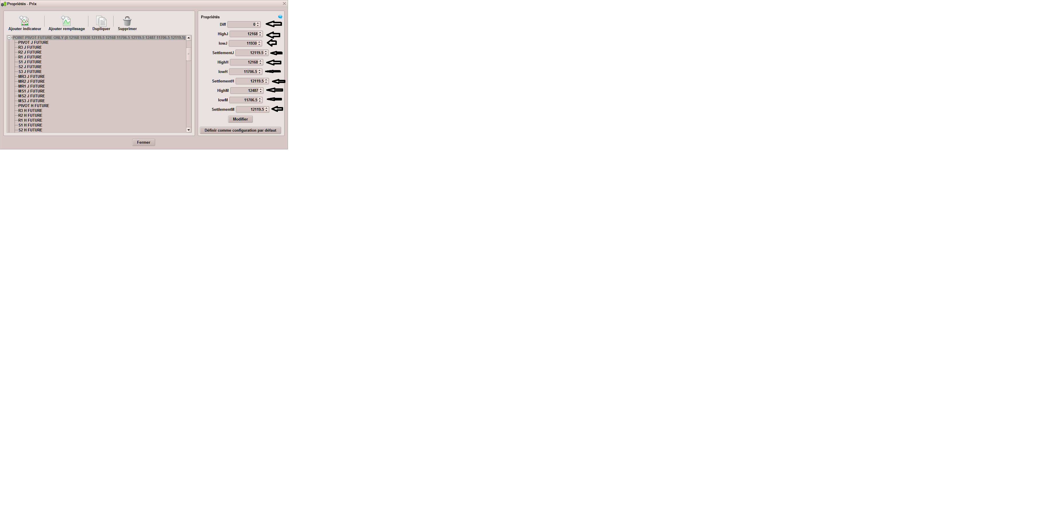 Peut-être qu’il y a une autre solution qui pourrait convenir à l’usage que tu veux faire des détails curseurs: soit dans la fenêtre principale avec les menus, soit avec un clic droit sur graphique, tu vas dans “affichage”, puis “détails curseur” (ou CTRL D) et ça t’ouvrira une nouvelle fenêtre où s’écrivent les détails du curseur, dont tu peux régler la largeur de telle sorte que toute la longue liste de paramètres qui définissent l’indicateur n’a pas la place d’apparaitre tout en gardant les valeurs bien visibles dans cette fenêtre.
