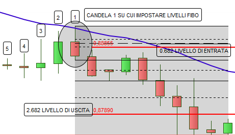 Quindi per entrare SHORT occorrono due candele rialziste seguite da una ribassista che abbia fatto un nuovo massimo? ed i livelli di Fibonacci vanno calcolati su quella ribassista?