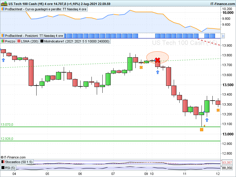 l’ingresso sarebbe dovuto avvenire dove ho messo la freccetta verde ti mando screen ….. a non guardare la definizione in grigio del codice che ti ho postato prima , il backtest lo ho effettuato su timeframe H4.