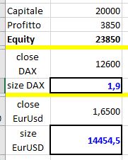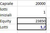 Dopodiché fai il rapporto, se con Capitale iniziale acquisto un lotto, con l’Equity attuale quanti ne acquisto? con la proporzione: