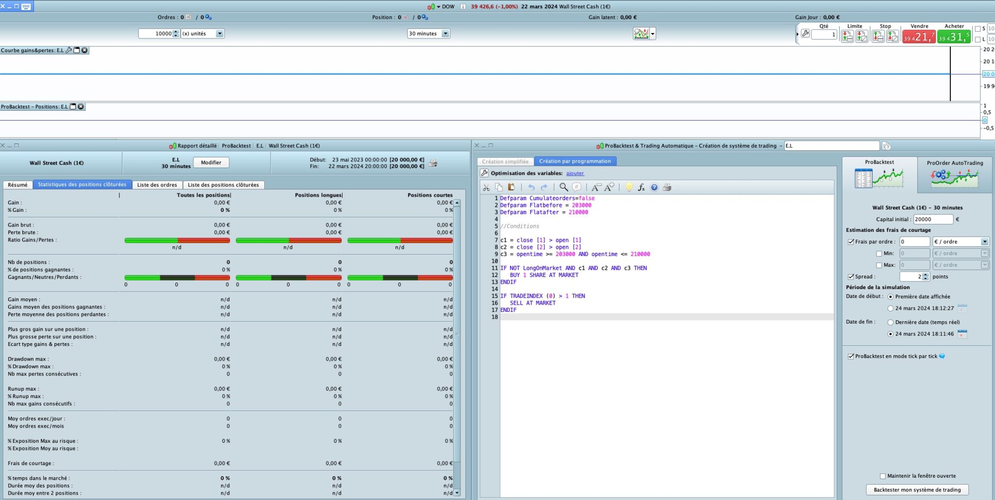 Je souhaite écrire un programme, à mon avis tout simple, me permettant de faire acheter par la machine 1 contrat d’indice tous les jours entre 20h30 et 21h00 dans les conditions suivantes (sachant que l’unité de temps de trading (timeframe) est de 30mn):
