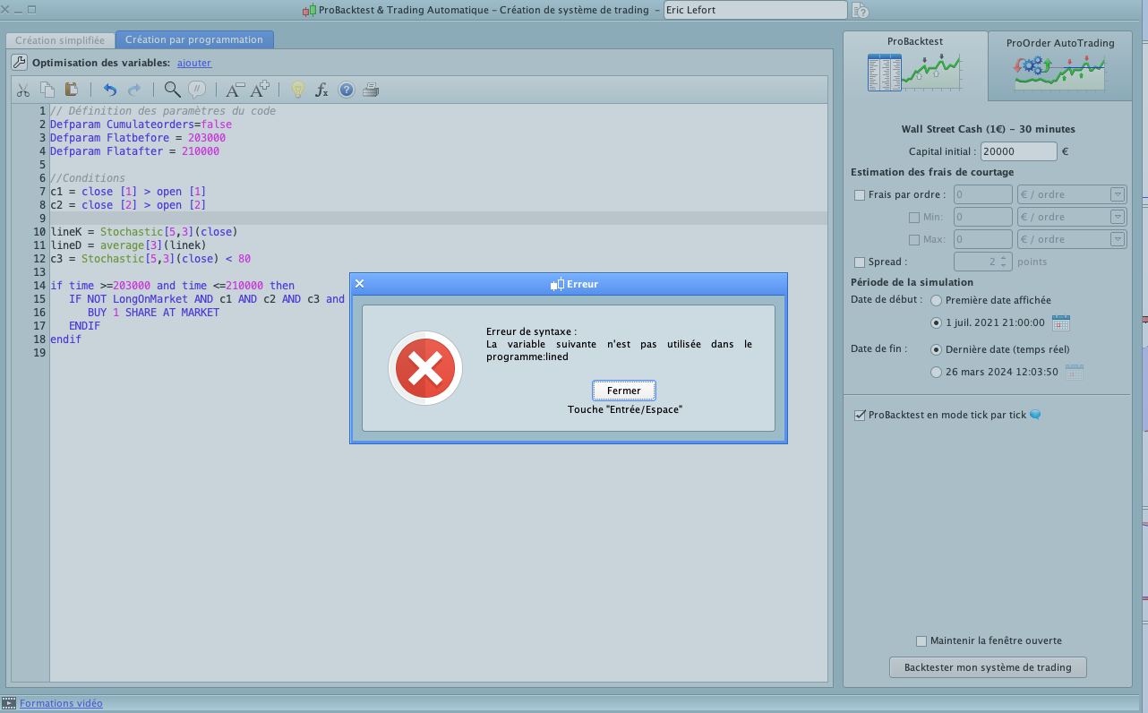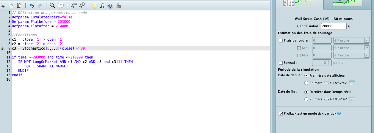 Malheureusement quand je back teste, j’ai encore un problème au niveau du stochastics, tel que vous l’avez rédigé.