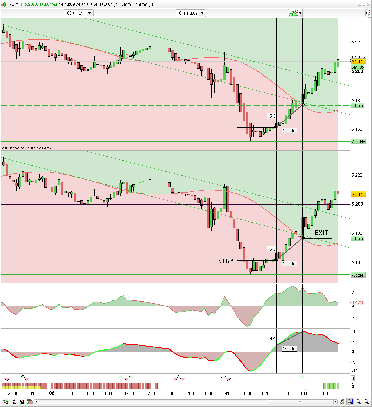 I’m currently not running it as an automated system until I can work out how to exit trades based on a decreasing/increasing value on MACD. That being said, I’m just trading the idea manually, however, below is a very basic system which would be the basis of where I’ll start creating my system from.