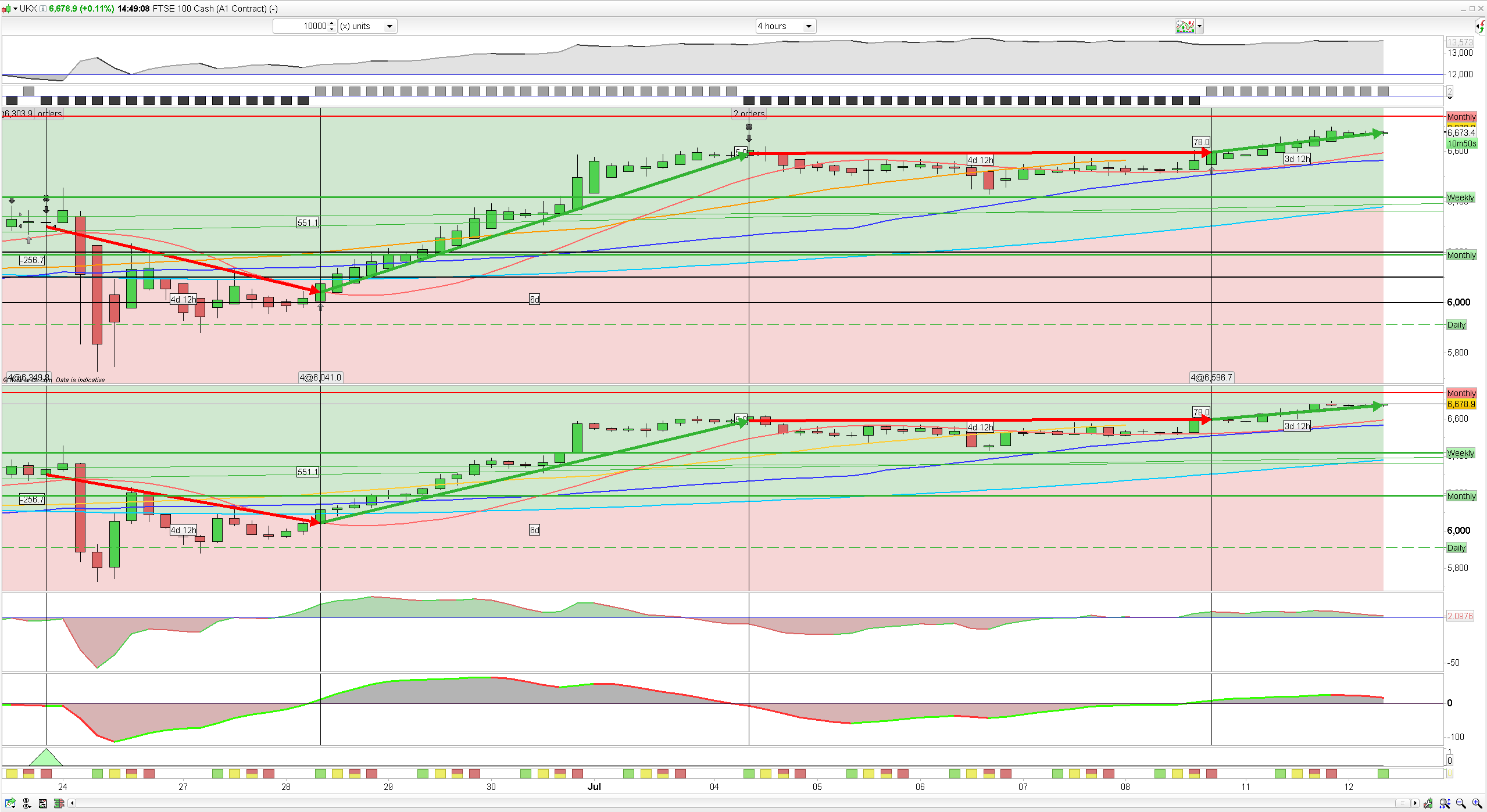 Forgot to mention in the screenshot that the 2 MACD indicators are; 1) the standard MACD with values 8/16/6 and 2) ZeroLag MACD with values 8/16/6. Also, shoutout to Nicolas for creating this indicator for us.