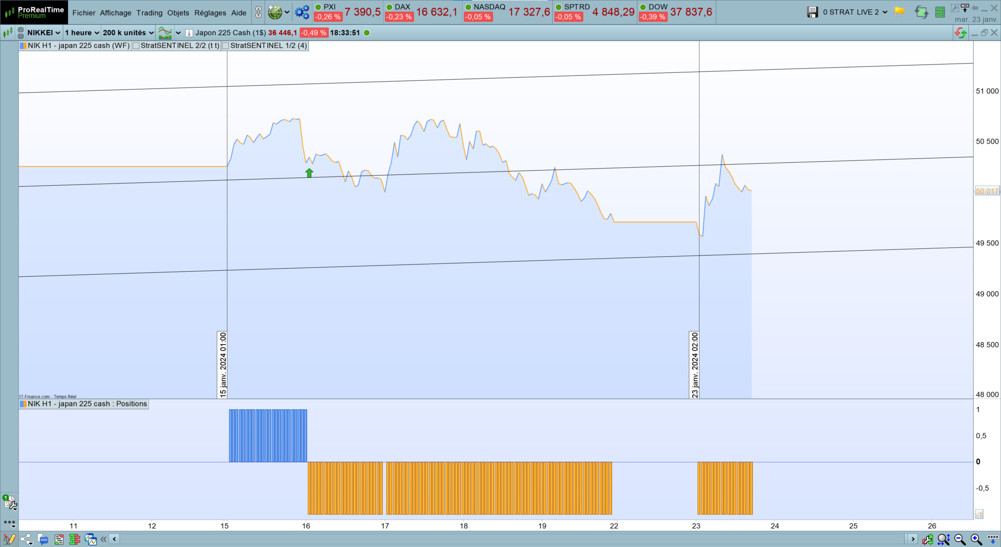 - and enclosed is the problem I face, in case the equity curve does not turn flat ; the vertical lines indicate the identified new trades (and some are missing as you can see)