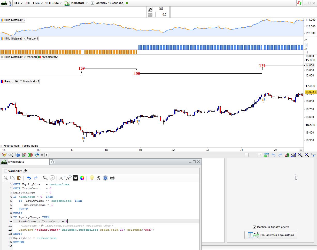 - this is the code I wrote in order to identify the number of trades as the ProOrder functions are not allowed in indicators for Equity Curve