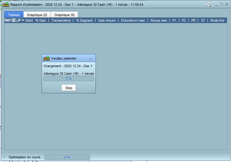 J’ai dû fermer ma plate-forme et me reconnecter, puis le backtest d’optimisation s’est correctement déroulé!