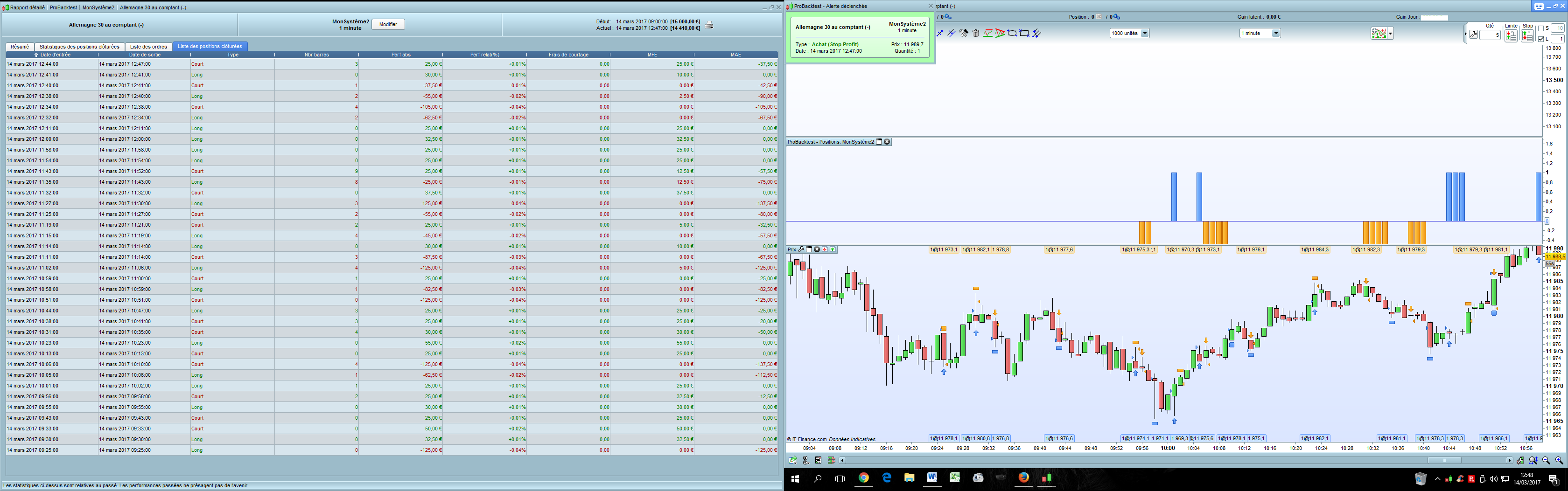 - merci de fournir en image un zoom du backtest dax 25 ticks avec cas de “position non conforme” et avec la fenêtre des variables du code affichées avec la fonction GRAPH (graph c1 as “c1”, graph c2 as “c2” etc…)