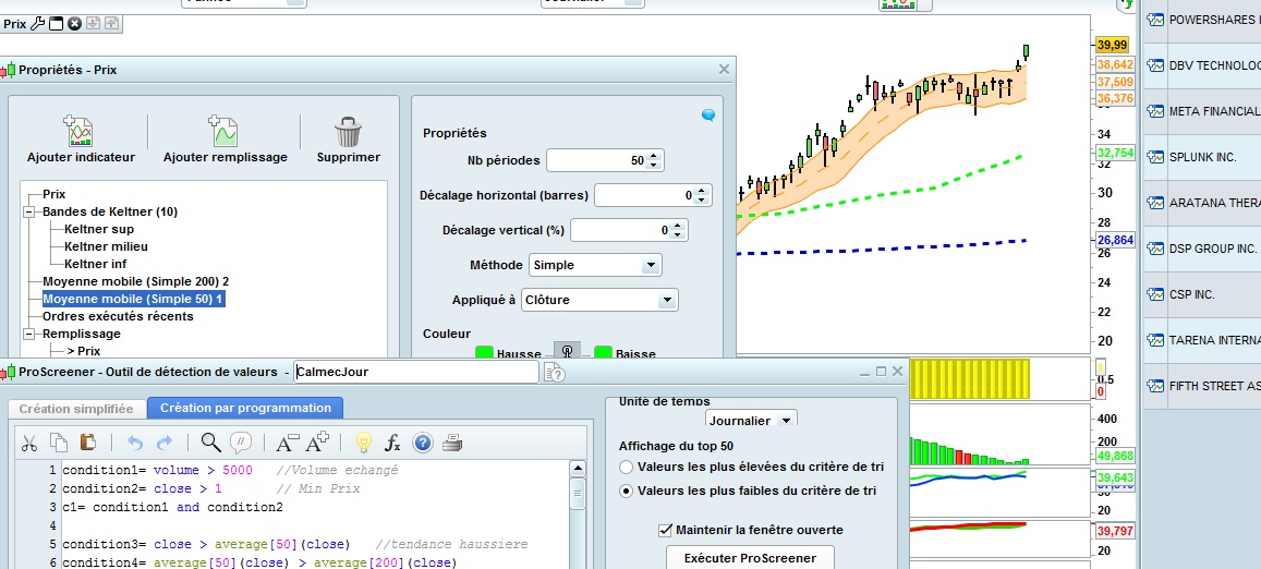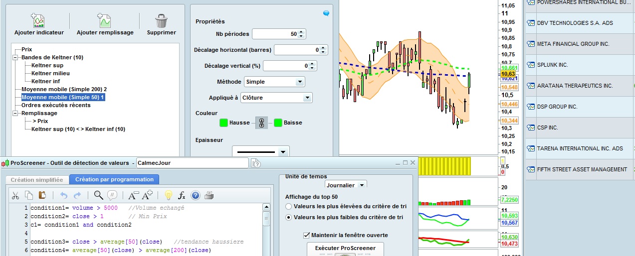 Comme tu peux le voir la condition n’est pas respectée (Close > mm50) 1 seule fois sur les 11 titres triés.