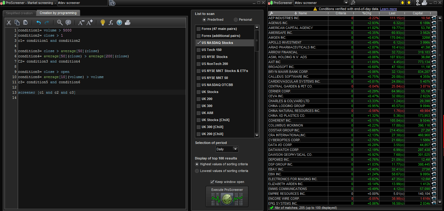 j’ai aligné quelques conditions dans un screener et toutes les conditions ne sont pas respectées: