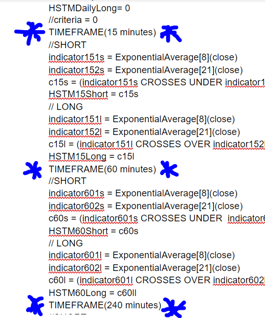 What is/are the exact TIMEFRAME lines of code in the screener? I’m not a big ProScreener user but for some reason I have in my mind that not all time frame choices are the same in ProScreener as in ProBuilder and ProOrder.