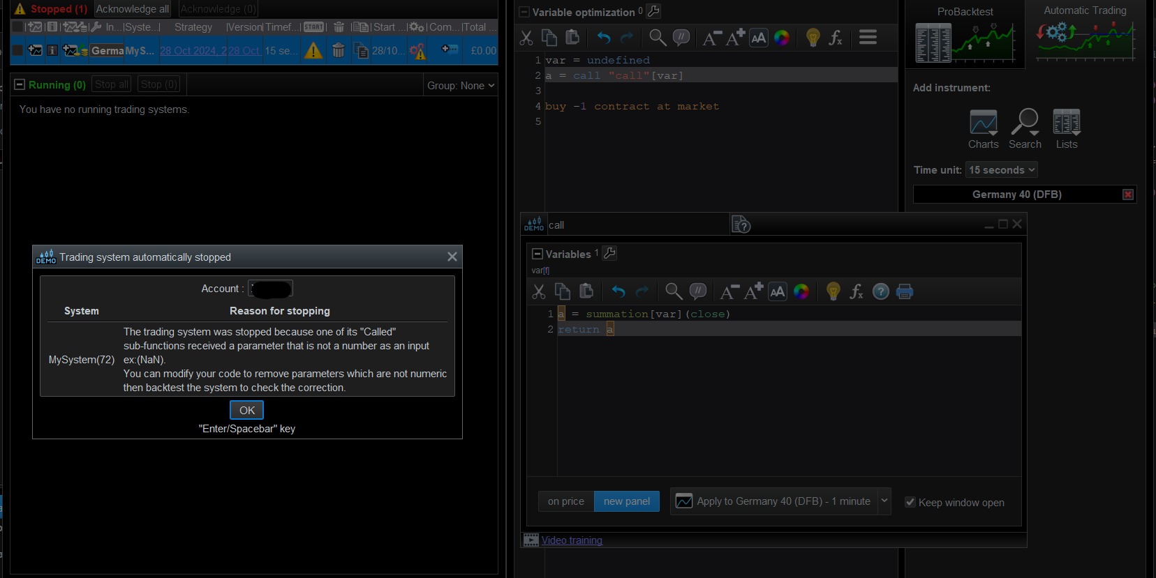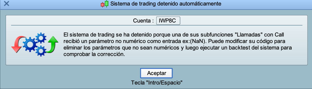 Desde hace una semana no me deja ejecutar sistemas que siempre había podido hacerlo, sin haber modificado nada. Incluso si el sistema se para ya no deja volver a activarlo, saliendo el mensaje de que existe un problema en la función CALL por recibir un parámetro no numérico. Adjunto pantallazo con el mensaje exacto. Gracias por vuestra ayuda.