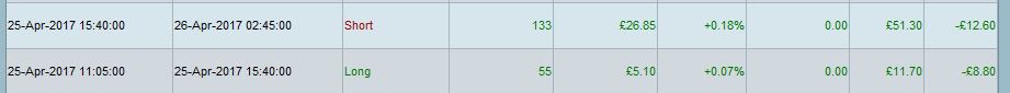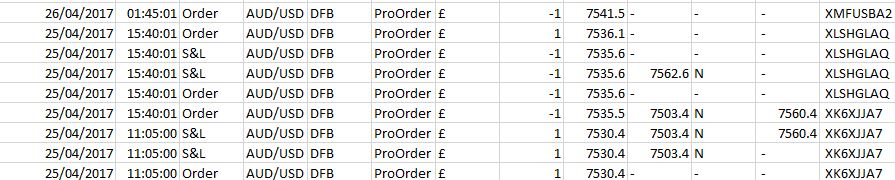 So, the issue arises when an existing position is in place, and a signal is generated in the opposite direction to the existing position, (ie, i’ve got a long position and a signal is generated which says I should open a short position. My intention was that, in this case, the system should simply close out the existing position and wait for the next opportunity. However, the live system and pro-back test treat this differently. Here’s a case, (AUD/USD 5 minutes) where this happened. (first attachment). When I ran this in live against an IG spreadbetting account, the system behaved as I would expect, the system opened a position at 11:05 and closed it out at 15:40, I’ve attached the transaction history, and you can see that the sell order is opened but immediately nets out against the long position and both then close.