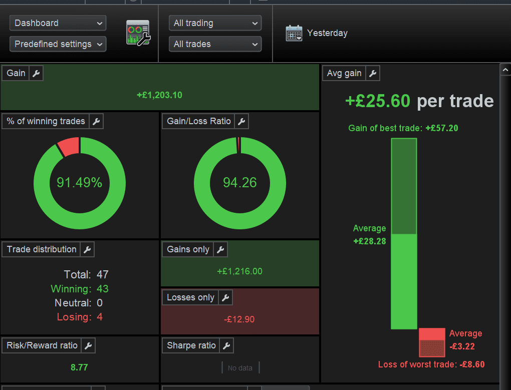 My open losing trades are Longs so I’m hoping they will come back into profit soon, but overnights fees are eating away at eventual profits and eating away at my psyche !!! 🙁