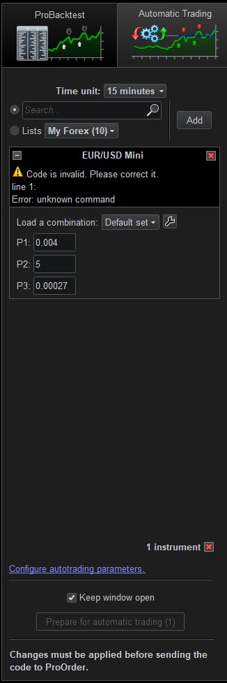 I am having an issue again with “Code is invalid” when I am trying to prepare for automatic trading. Tried again all the suggestions as proposed before with no effect. What I realise is that I am only having this issue when I am working with FX and using decimals in variable optimisation parameters.