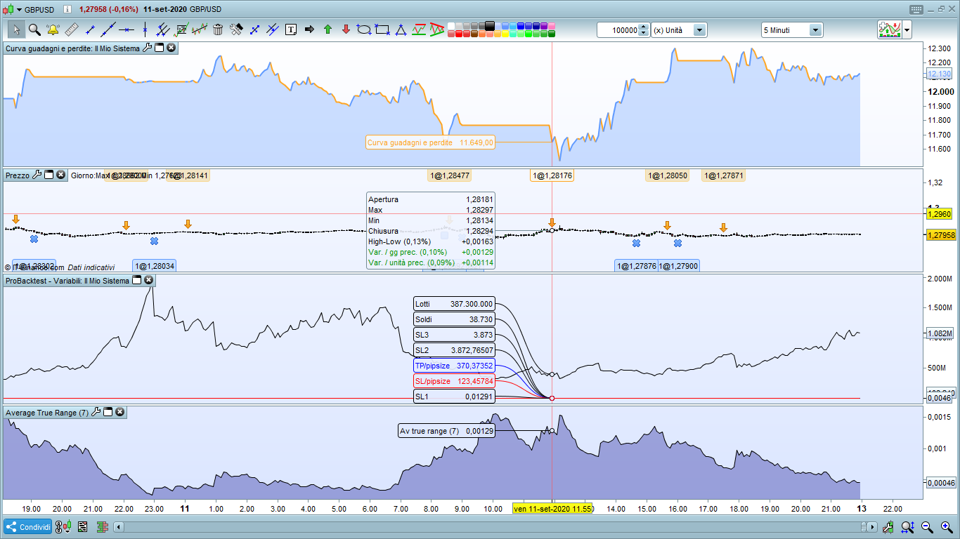Esatto infatti io vorrei che il numero dei lotti sia diverso per ogni posizione facendo in modo che il valore dell stop loss sia di 50 euro e il profit 150 indipendentemente dai pips che ci sono quindi per farlo devo per forza cambiare il lotti di entrata. Se voglio farlo come sarebbero le istruzioni? e per gbp/usd qual’è il numero di lotti minimo?
