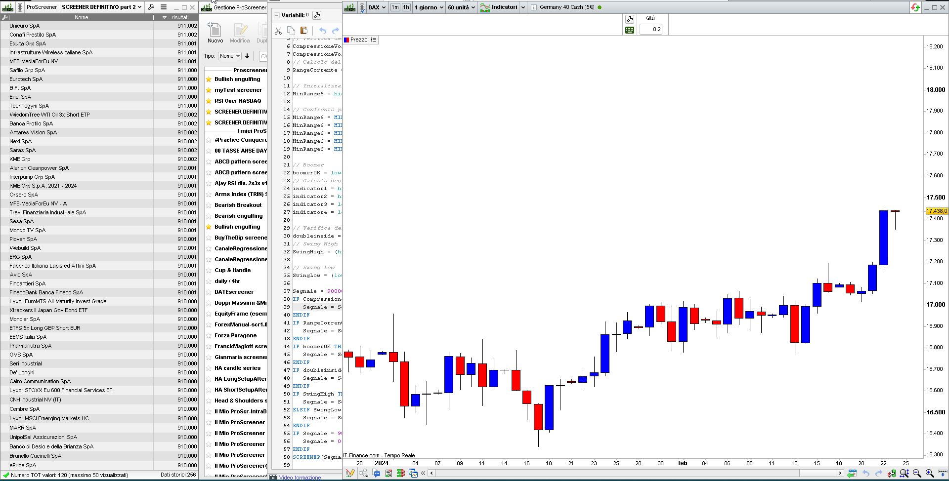 Qui il codice dello screener, in allegato metto anche il file di esportazione