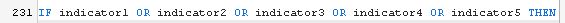 1IF indicator1 OR indicator2 OR indicator3 OR indicator4 OR indicator5 THENbasta che uno qualsiasi sia verificato, invece con AND devono verificarsi TUTTI e non è possibile!