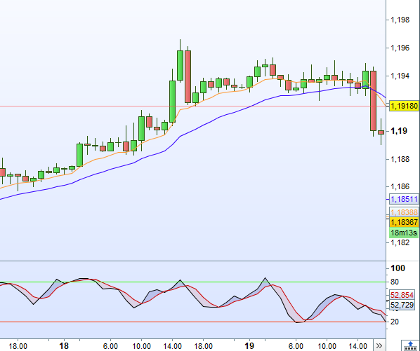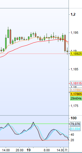 I settaggi sono: medie mobili esponenziali 9 e 21 periodi, stocastico (5,3,3)