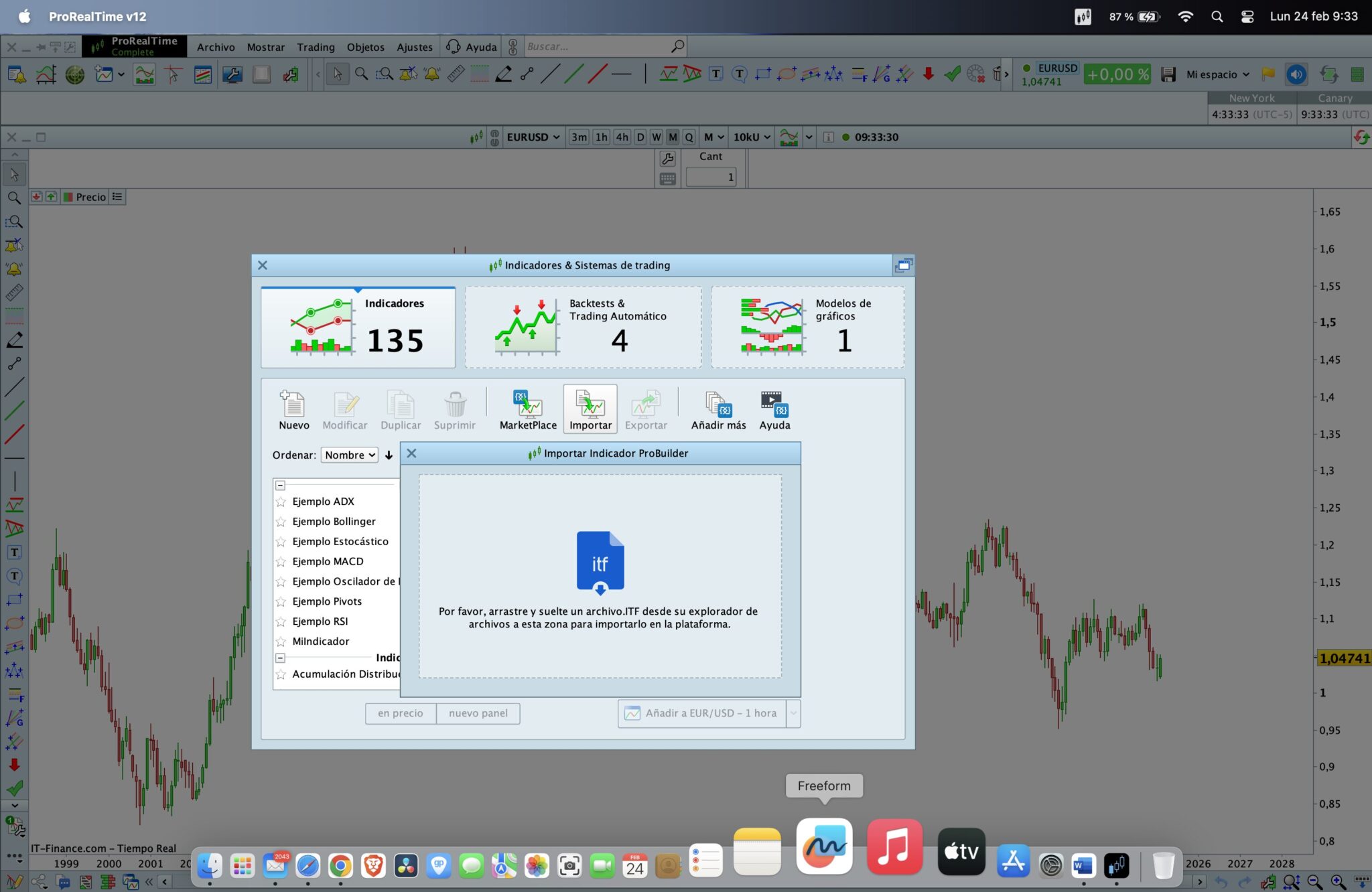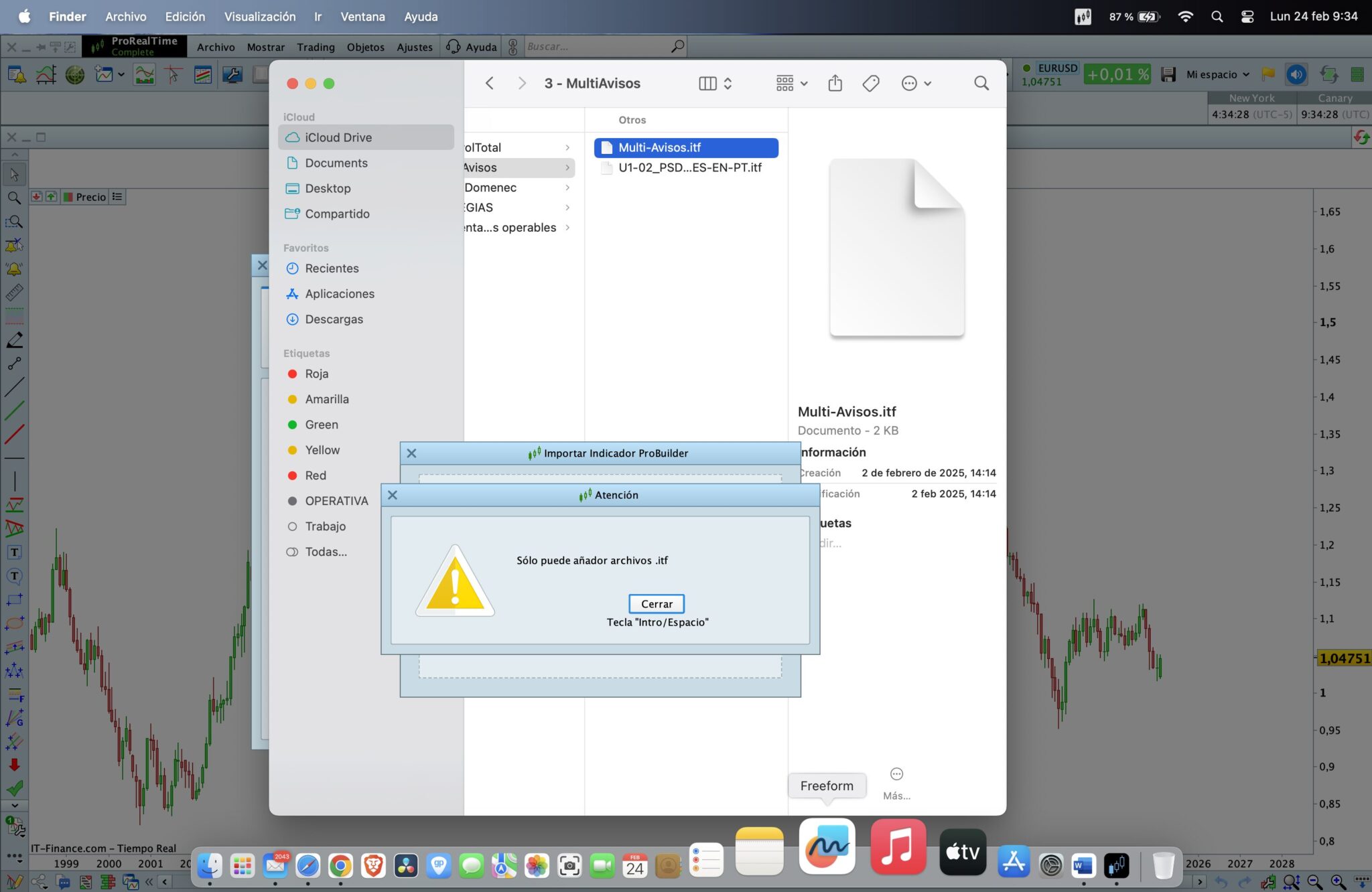 Abrí cuenta Real en IG y trabajo con un MacBook Pro M2 en Sequioa, he intentado, desde mi cuenta IG e instalando el PRT en un windows y va bien, pude importar sin problemas los indicadores, pero como he comentado antes, trabajo con un Mac.