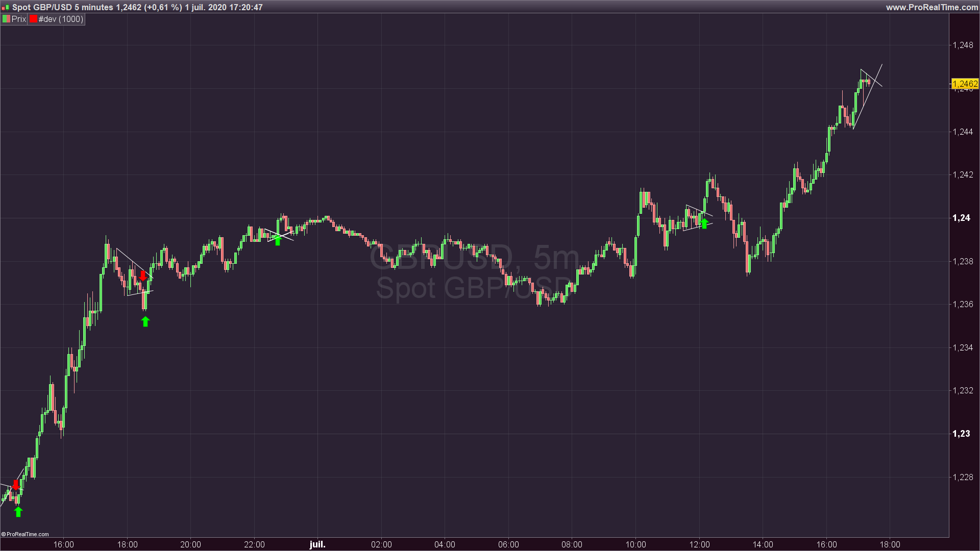 exemple fleche verte quand le triangle est cassé par le haut à la cloture de l’extension du segment