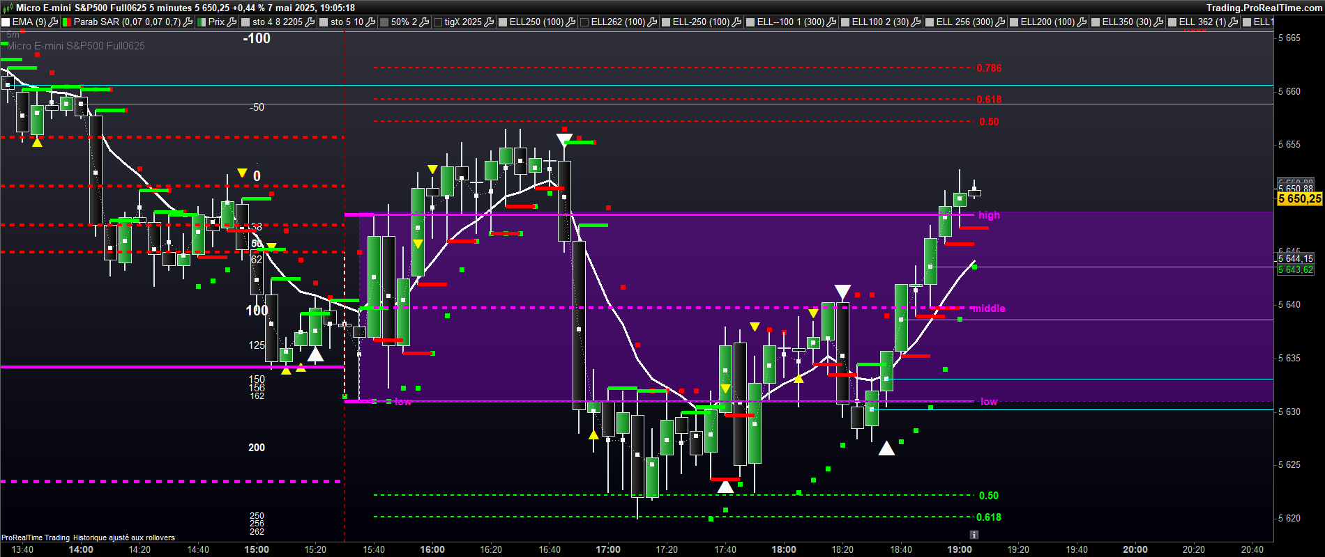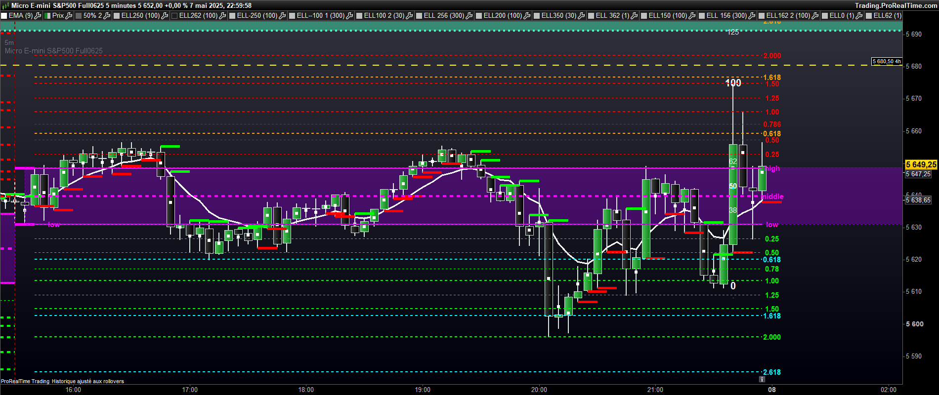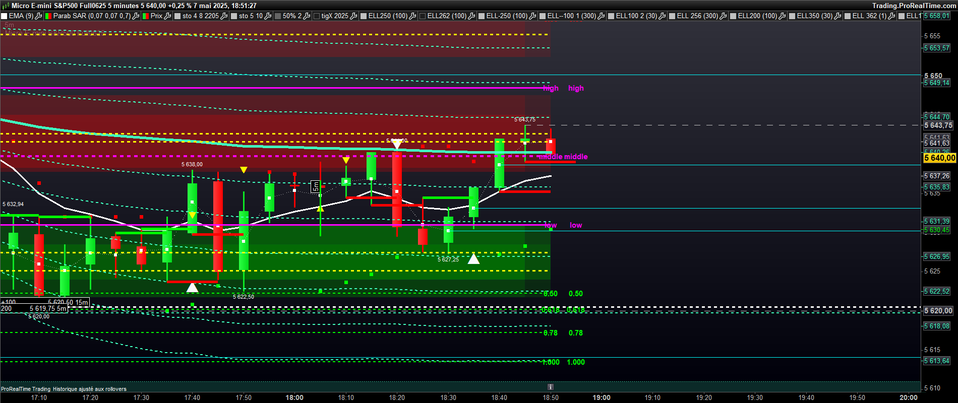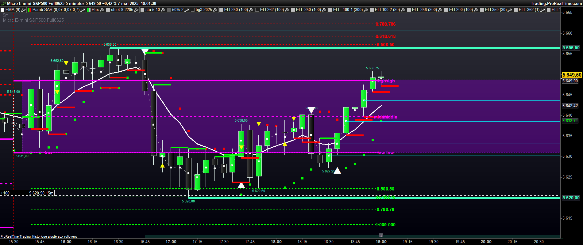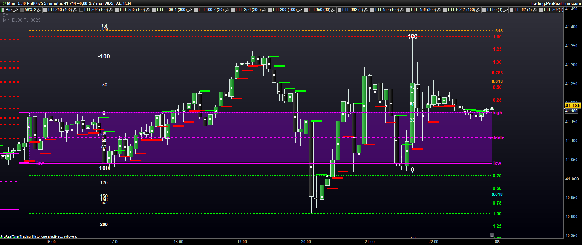 voici le graphe sans vwap. les niveaux aujourdhui bien respectés. notamment le 0.618 down et 0.5 high
