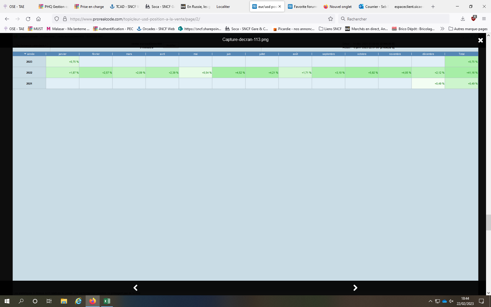 aurais tu le calendrier à partager pour voir le pourcentage des années de 2010 à 2023?