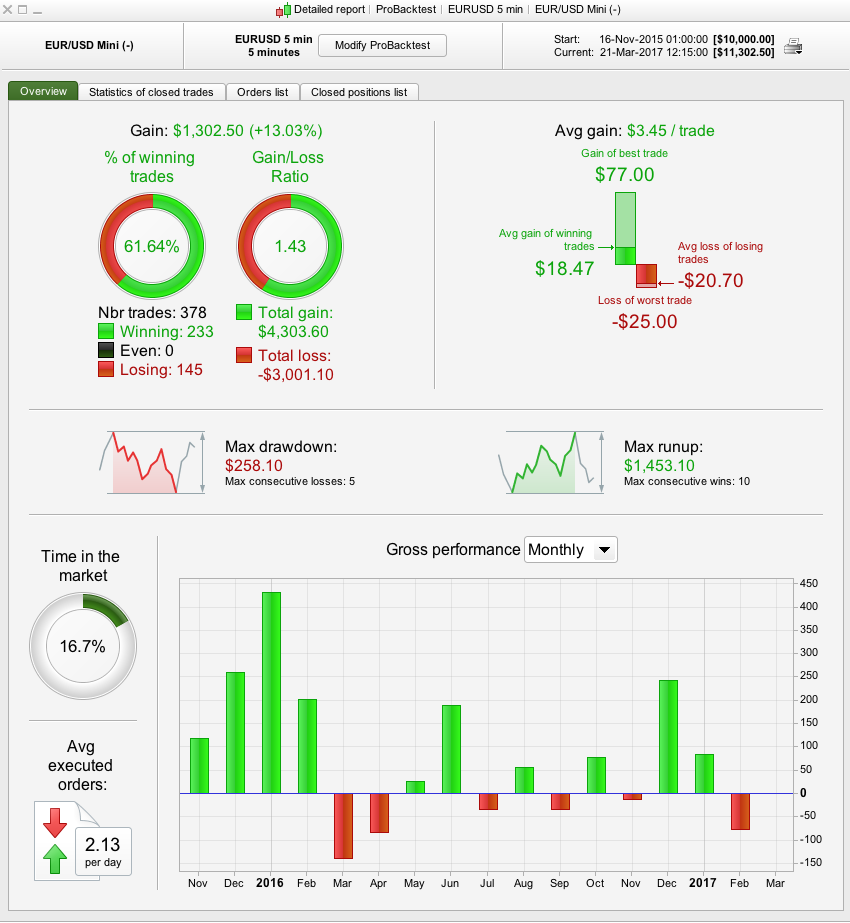 Nice share Victor, thanks a lot. Results are somehow different before last year, but it’s already something interesting because you did not over optimised anything and intraday trading on forex pairs is a battlefield 🙂