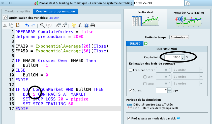I want to buy EUR/USD Mini so the size of one contrat (0,1 Lot) is 10 000 USD and with IG and EMSA low I need only 333 USD (10 000 / 30 = 333 that is the margin I need to open one a position of 0,1 Lot), and my initial capital is 1000$ as you can see on the picture below, so noamaly I can open maximum a position with 0,3 (1000$ / 333$ = 3)